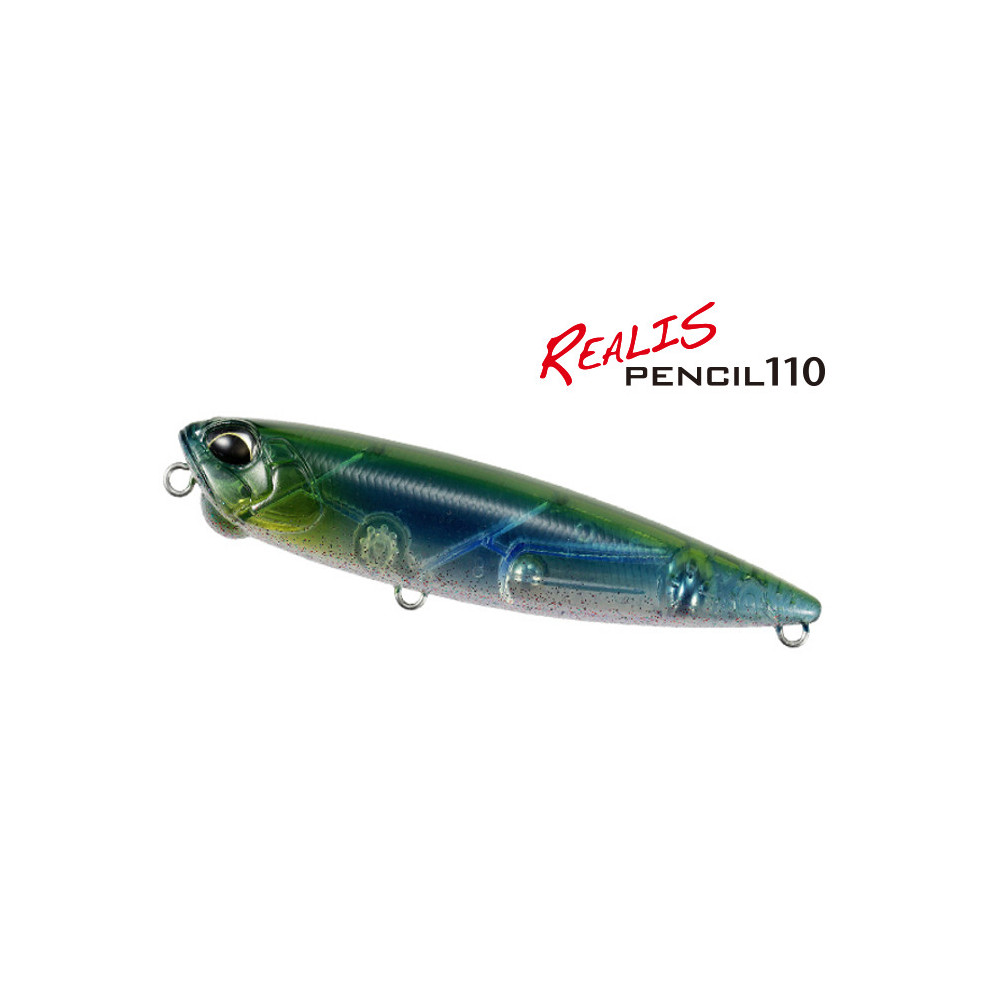 Il Realis Pencil 110 è un walking the dog per la pesca a spinning topwater. Ha un corpo sottile con i pesi posizionati nella parte posteriore e una sfera inserita dagli ingegneri della Duo, nella parte frontale, per aumentare l'azione di nuoto di questo artificiale.